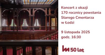 Na rok 2025 przypada 170. rocznica powstania Starego Cmentarza przy ulicy Ogrodowej – najstarszej łódzkiej nekropolii. To szczególne miejsce, świadczące o wielokulturowej historii Łodzi. Muzeum Miasta Łodzi od wielu lat wspiera działania na rzecz ochrony zabytków Starego Cmentarza. Aby uczcić ważną dla tego miejsca rocznicę, Muzeum wspólnie z Towarzystwem Opieki nad Starym Cmentarzem w Łodzi organizuje specjalny koncert. Wystąpi na nim Stowarzyszenie Śpiewacze HARMONIA, jeden z najstarszych chórów w Polsce. Od czasu jego powstania, w 1886 roku, w chórze działało ponad 1300 osób. Repertuar HARMONII obejmuje muzykę sakralną i świecką, od średniowiecza po współczesność. Chór bierze udział w wielu konkursach krajowych i zagranicznych, na których zdobywa liczne nagrody i wyróżnienia.