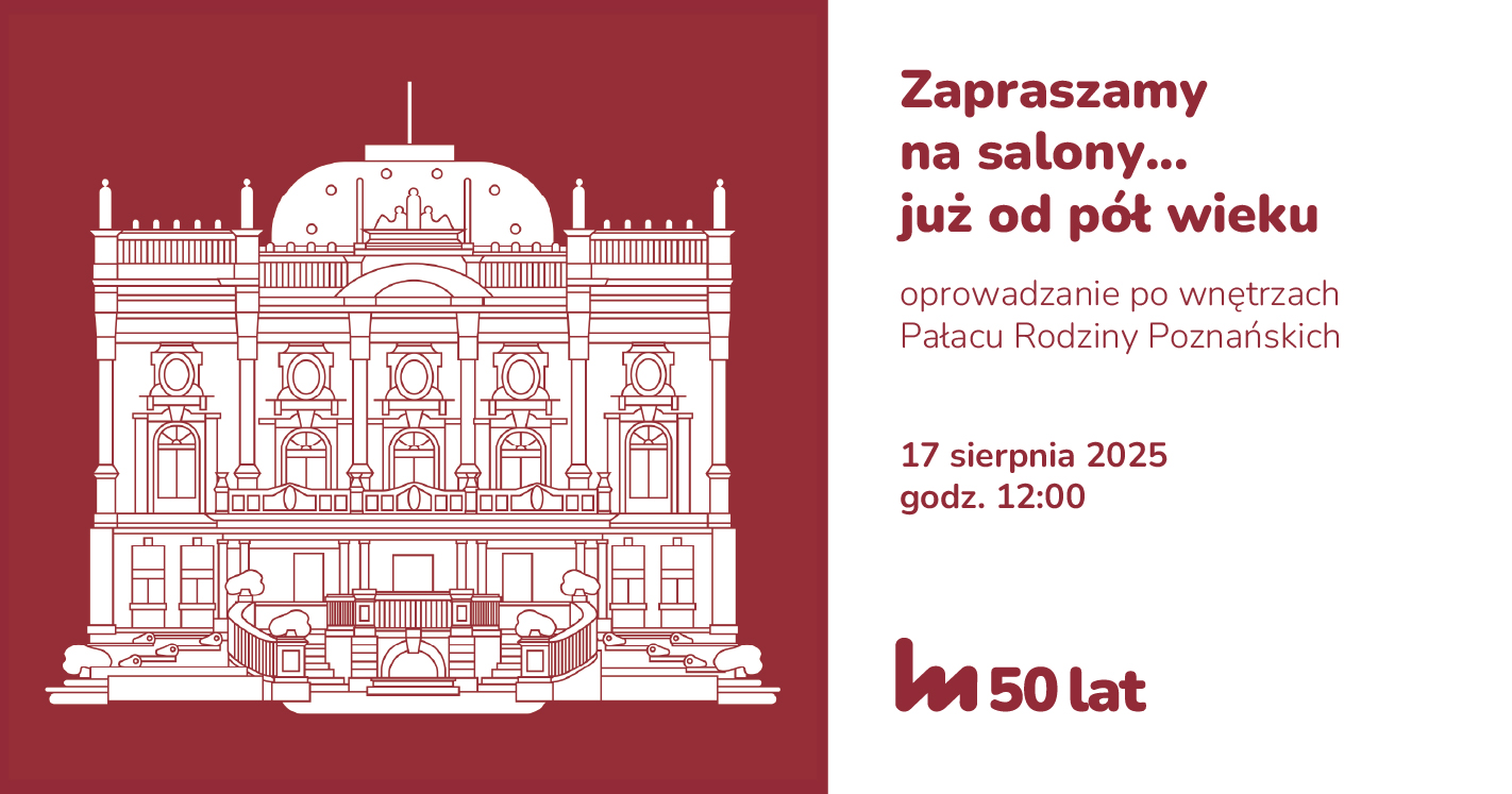 Rok 2025 to dla Muzeum Miasta Łodzi wyjątkowy czas, obchodzi ono bowiem 50-lecie swojego istnienia. Z tej okazji chcemy zaprosić łodzian oraz wszystkich odwiedzających miasto do poznania dziejów naszej instytucji i jednocześnie spaceru przez historię, który pozwoli na aktywne obcowanie z dziedzictwem kulturowym Łodzi. W tym szczególnym, jubileuszowym roku zapraszamy do Pałacu Rodziny Poznańskich – perły łódzkiej architektury, na wyjątkowe oprowadzanie po muzealnych wystawach, które będzie się odbywało dwa razy w miesiącu – by móc dzielić się z naszymi Gośćmi historią miasta oraz wspólnie świętować ten wyjątkowy, muzealny jubileusz.