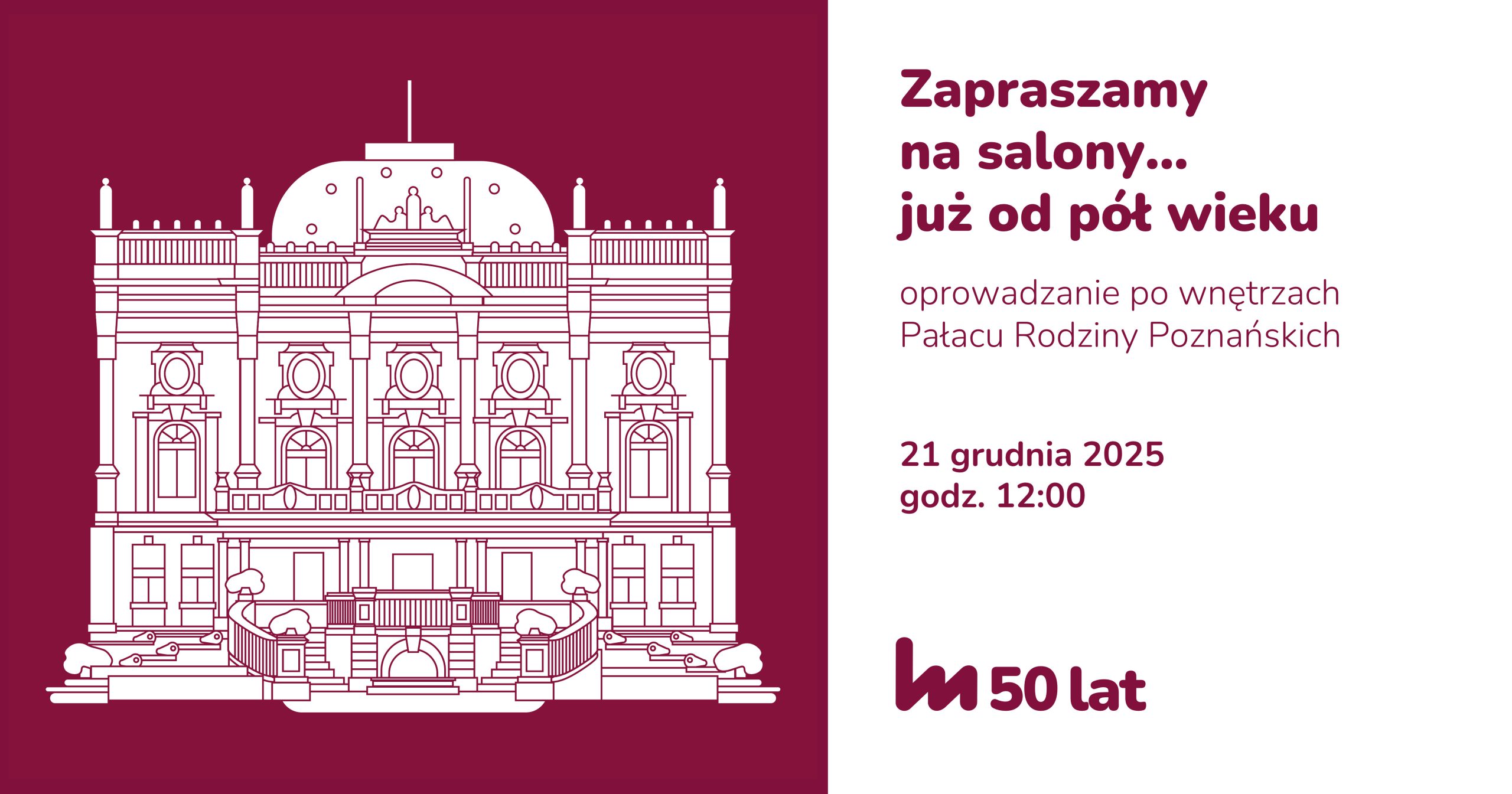 Rok 2025 to dla Muzeum Miasta Łodzi wyjątkowy czas, obchodzi ono bowiem 50-lecie swojego istnienia. Z tej okazji chcemy zaprosić łodzian oraz wszystkich odwiedzających miasto do poznania dziejów naszej instytucji i jednocześnie spaceru przez historię, który pozwoli na aktywne obcowanie z dziedzictwem kulturowym Łodzi. W tym szczególnym, jubileuszowym roku zapraszamy do Pałacu Rodziny Poznańskich – perły łódzkiej architektury, na wyjątkowe oprowadzanie po muzealnych wystawach, które będzie się odbywało dwa razy w miesiącu – by móc dzielić się z naszymi Gośćmi historią miasta oraz wspólnie świętować ten wyjątkowy, muzealny jubileusz.