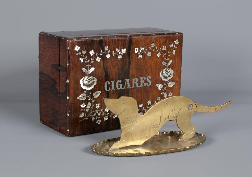Wśród eksponatów zaprezentowano tabakiery, fajki, cygarniczki, pudełka na tytoń i cygara, gilotyny do cygar, papierośnice, vesty oraz popielniczki. Przy ich doborze starano się nie tylko ukazać ewolucję form przywołanych artefaktów, ale też kierowano się ich funkcją użytkową i dekoracyjną. Uzupełnienie przedmiotów artystycznych – zgodnie z zasadą korespondencji sztuk – stanowią nieliczne przykłady malarstwa, dawnych reklam oraz fotografii. Eksponaty pochodzą ze zbiorów Muzeum Miasta Łodzi, Muzeum Archeologicznego i Etnograficznego w Łodzi, Muzeum w Łowiczu oraz z łódzkich kolekcji prywatnych.